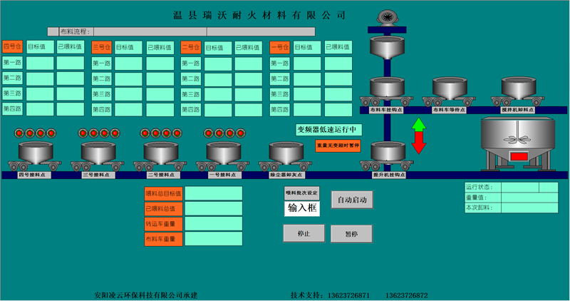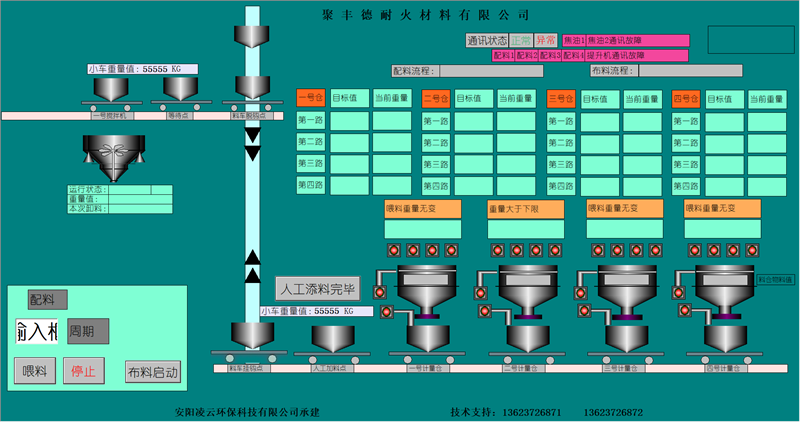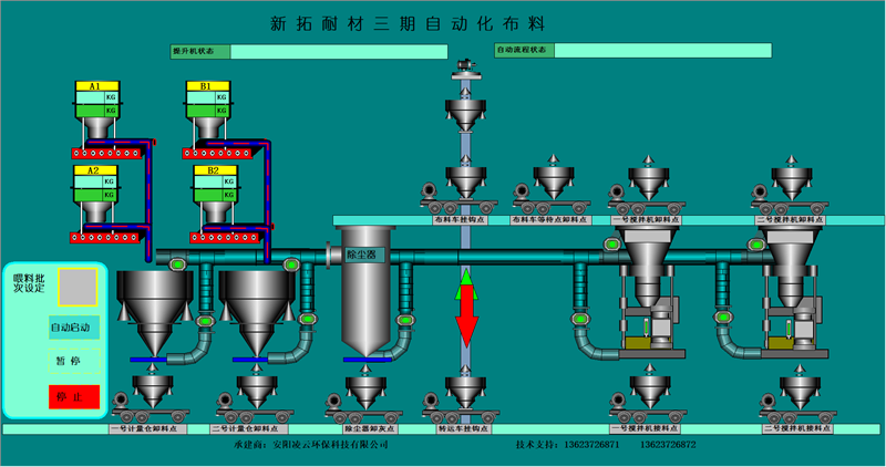 本公司擁有優(yōu)良的生產(chǎn)設(shè)備和技術(shù)開發(fā)團(tuán)隊(duì),以良好的管理模式,豐富的生產(chǎn)和設(shè)計(jì)經(jīng)驗(yàn)為環(huán)保工作做出了的一定的貢獻(xiàn)。主要針對(duì)鋼鐵、耐材等行業(yè)無塵環(huán)保配料工藝的改進(jìn),設(shè)計(jì)和生產(chǎn)全自動(dòng)化無塵配料設(shè)備。除塵部分分為:集中式收塵和分散式收塵。計(jì)量部分分為:增量計(jì)量和減量計(jì)量控制模式??刂撇糠址譃椋杭儐纹瑱C(jī)控制、單片機(jī)加PLC控制、純PLC控制。